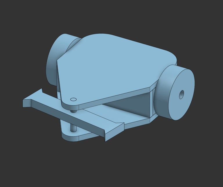 So far I've purchased the parts necessary to get the bot moving: remote transmitter, receiver, gearmotors, motor ESCs, power switch, battery, and foam wheels. Although ItGresa Robotics had beginner kits with everything needed to start, I preferred to design my own bot and got the parts individually instead. So far I've been working on a rough concept model that I've been refining as I reiterate quickly on 3D printed parts. The image in the header of this post is what I've come up with so far. The big focus has been on figuring out how to fit all of the electronic components within the chassis efficiently so I've started with the motors seeing as they're the biggest parts. To flush mount them inside the chassis I created this part to have a heat set threaded insert so it can be fastened to the chassis from the outside: